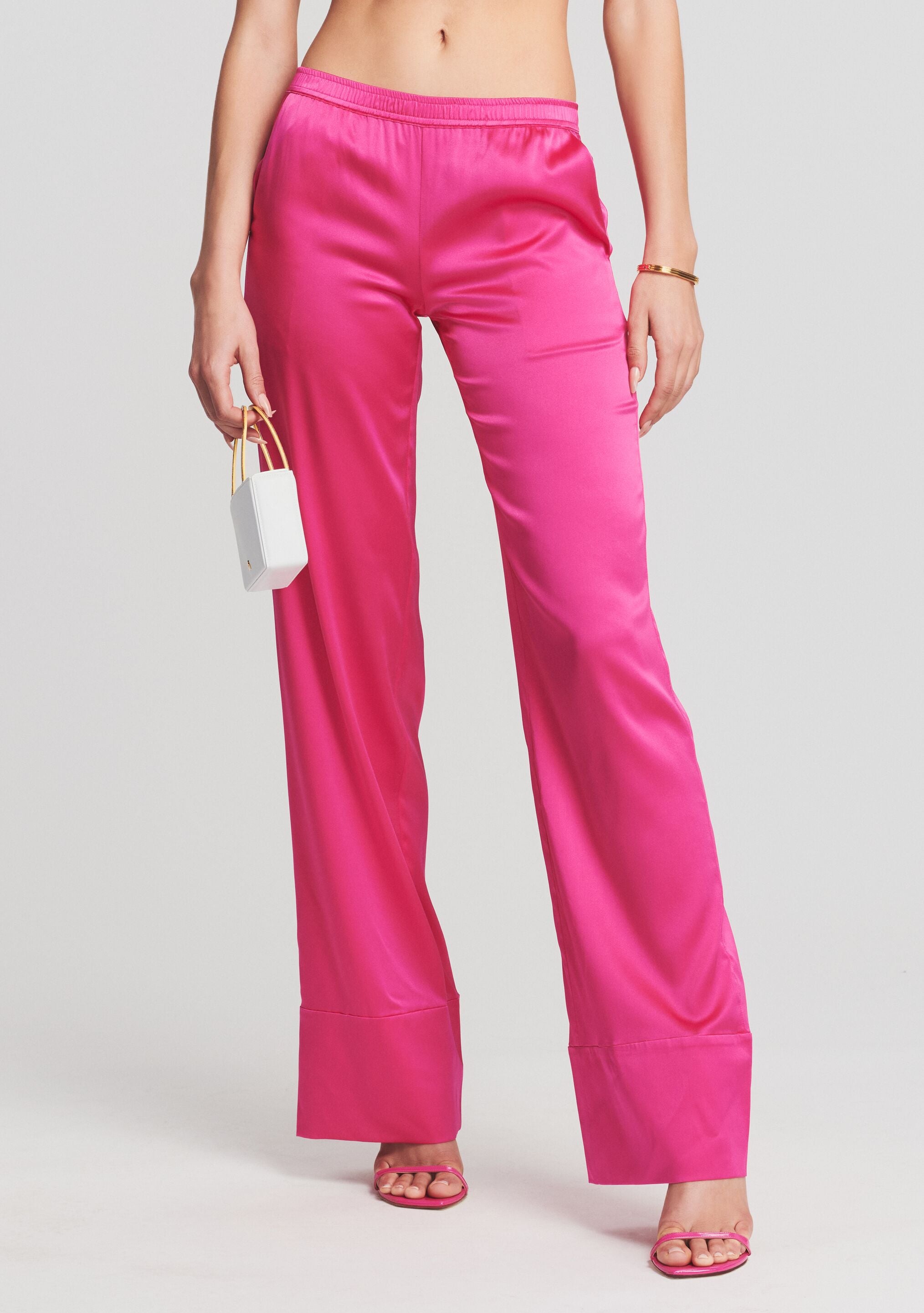 The Hazel Pant by SER.O.YA is a bright twist on a classic silhouette. The wide-leg pant features a relaxed low-rise fit with an elastic waistband. Pair the stretch silk satin bottom with the Iris Bralette for a co-ord look. Shown here in Fuchsia Purple.